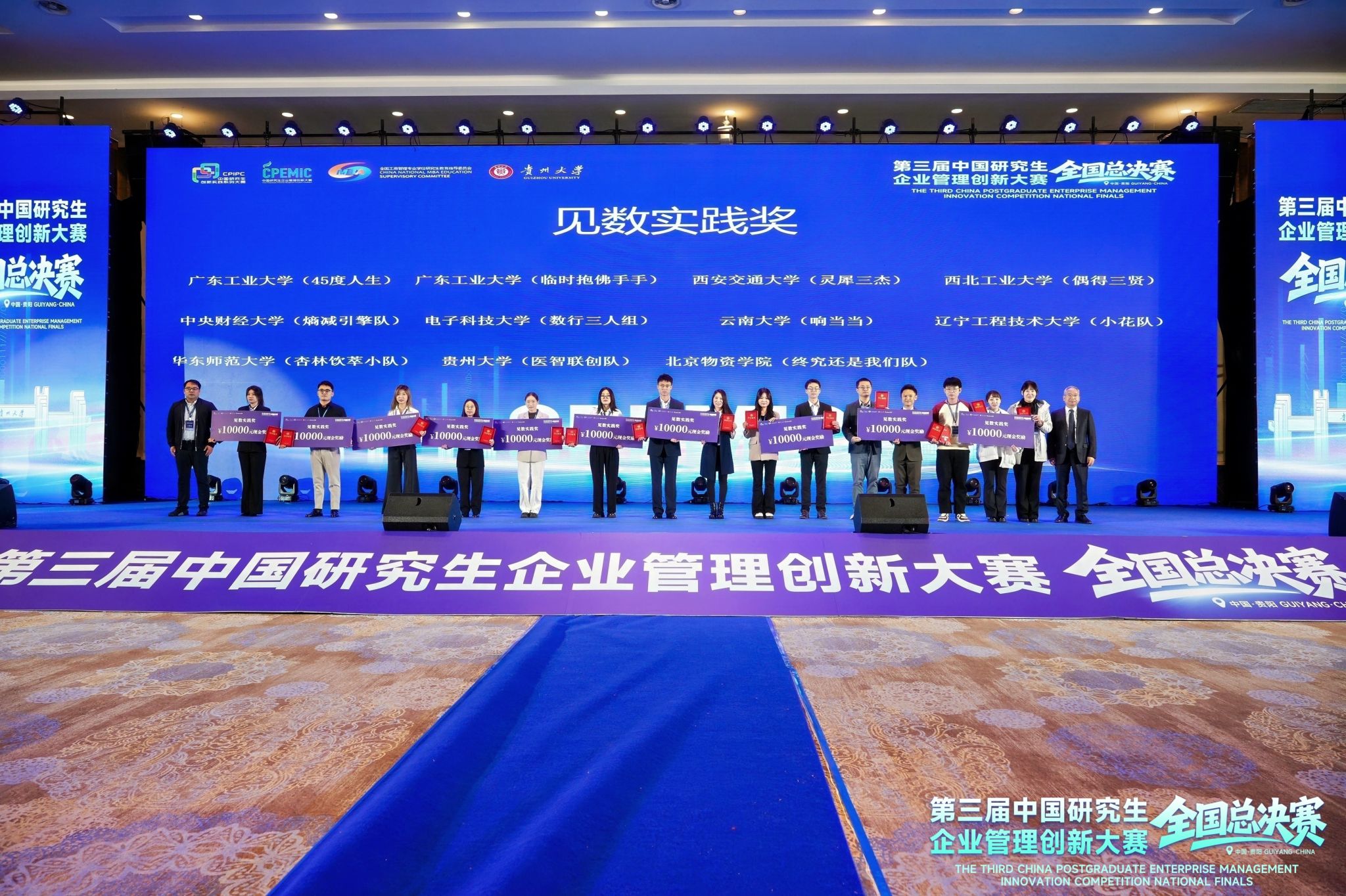 11月7日-9日,2025年第三届中国研究生企业管理创新大赛总决赛在贵阳圆满落幕。作为由教育部学位管理与研究生教育司指导,中国学位与研究生教育学会、中国科协青少年科技中心主办,全国工商管理专业学位研究生教育指导委员会联合主办的国家级赛事,本届大赛竞争强度与参赛规模再创新高——吸引全国150所高校的411支研究生团队同台竞技,管理学院学子凭借扎实的专业素养与高效团队协作,最终获奖26项,更将赛道二的最高荣誉“见数实践奖”(全国仅设11项,获奖率低至1%)收入囊中,学校亦连续三届荣获“优秀组织单位”称号,彰显硬核育人实力。
