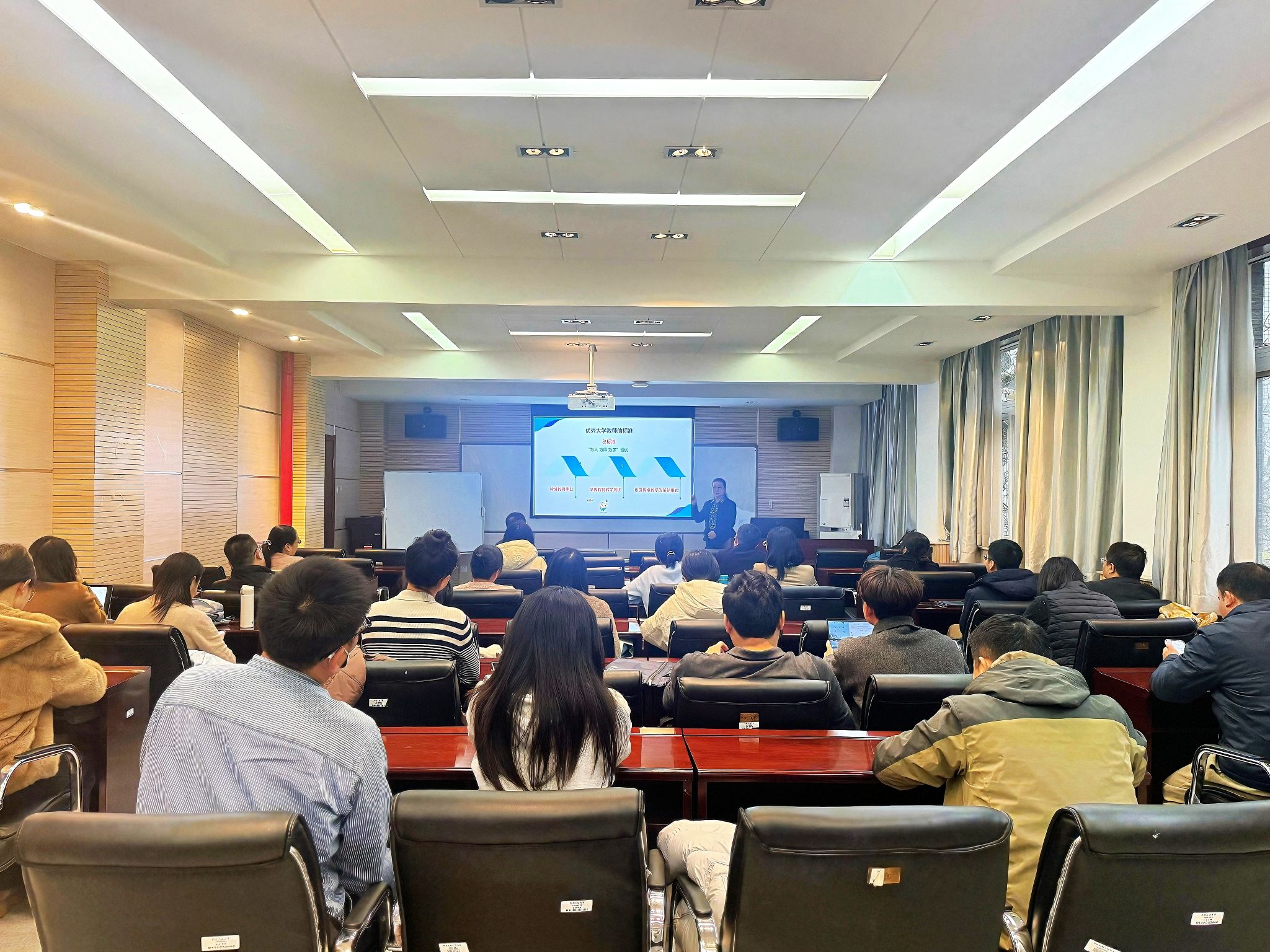 为提升教师素质和师德素养,2025年12月12日,管理学院特邀上海海事大学王金凤教授作题为“大学教师学养之内涵经验分享——铁肩担道义 妙手著文章”的主题报告,报告会由管理学院院长车阿大教授主持,30余位教师参加。