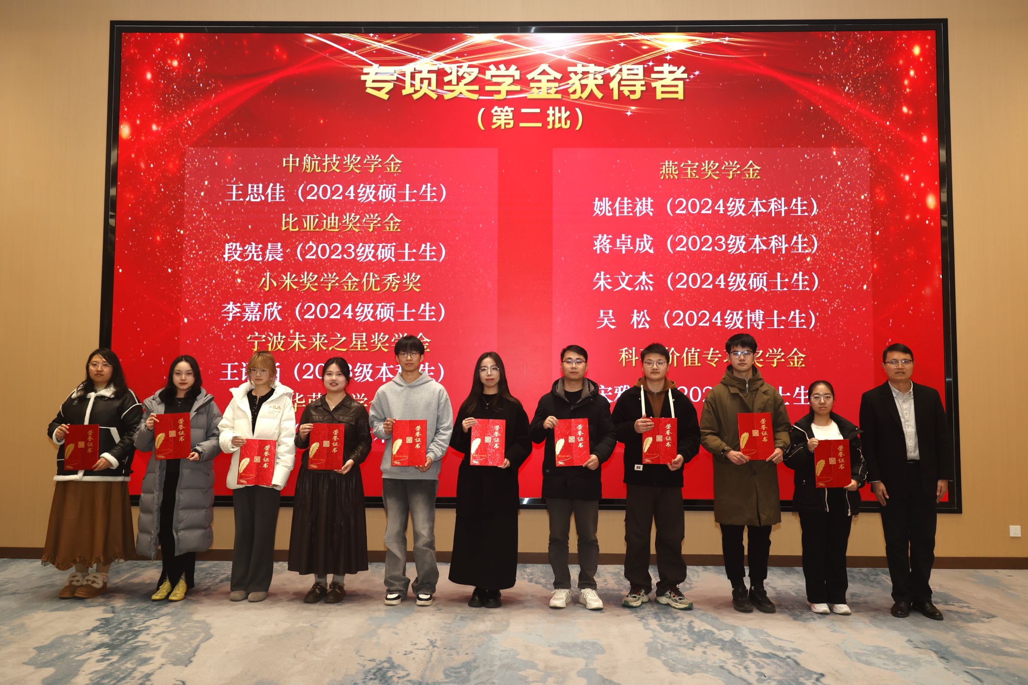 班主任祝建辉、介任龙为学院奖学金获奖代表颁奖