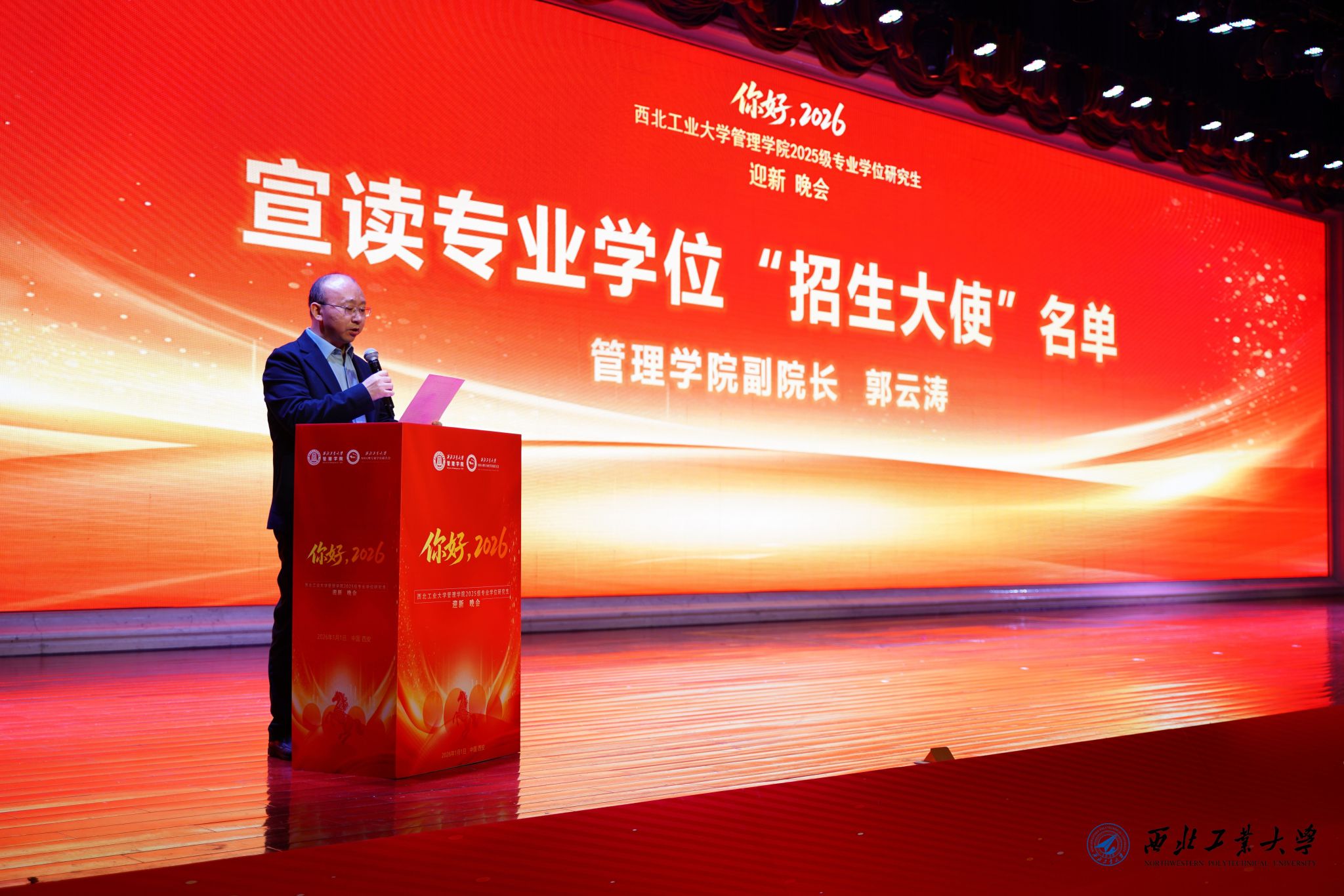 2026年1月1日晚,管理学院2025级专业学位研究生迎新晚会在金色大厅隆重举行。学院领导、工作人员、部分校友和2025级全体专业学位研究生新生参加了此次晚会。