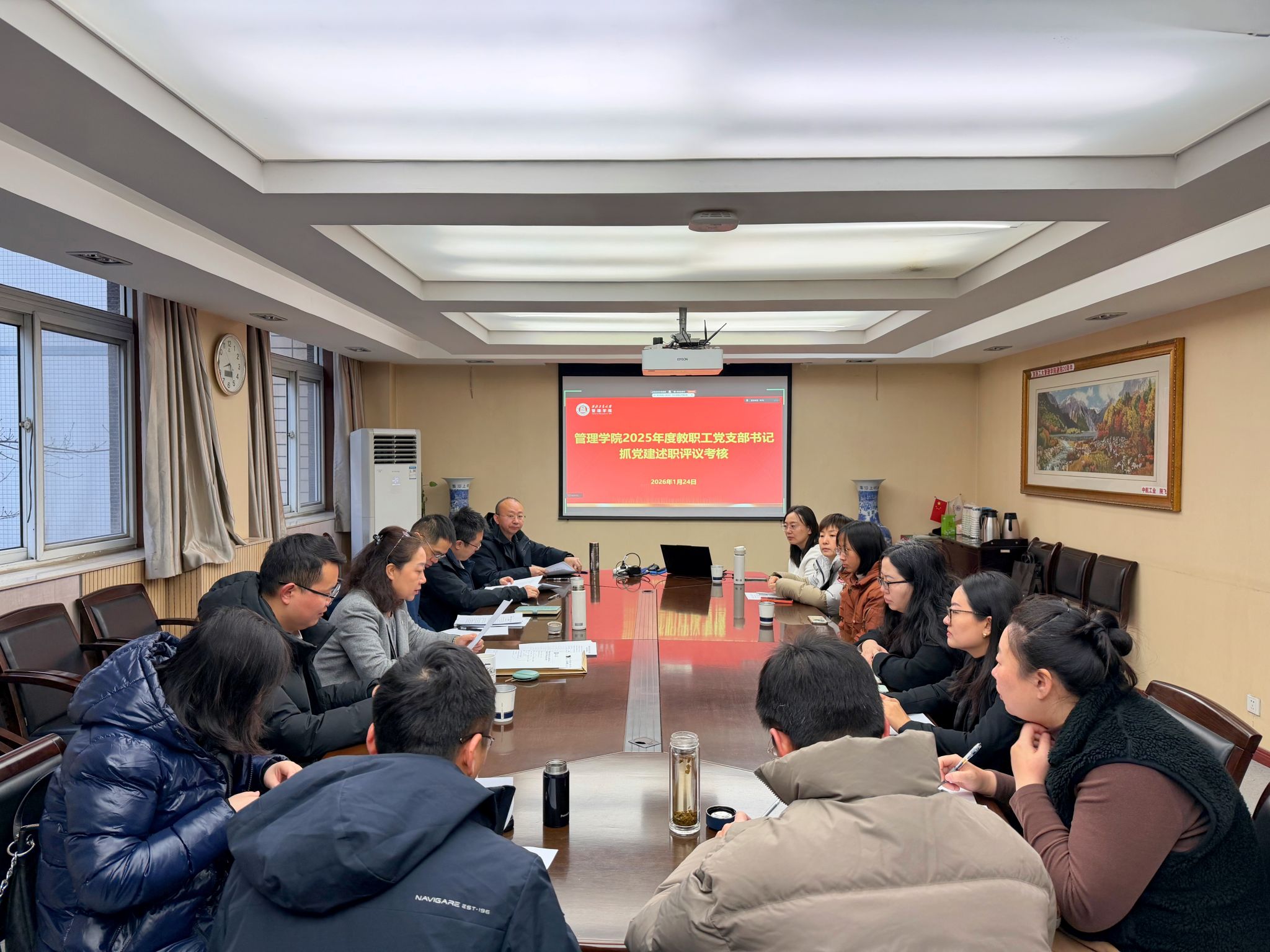 2026年1月24日上午,管理学院召开2025年度教工党支部书记抓党建述职考核会。学院领导班子成员、教职工党员代表参加会议,会议由学院党委书记张爽主持。