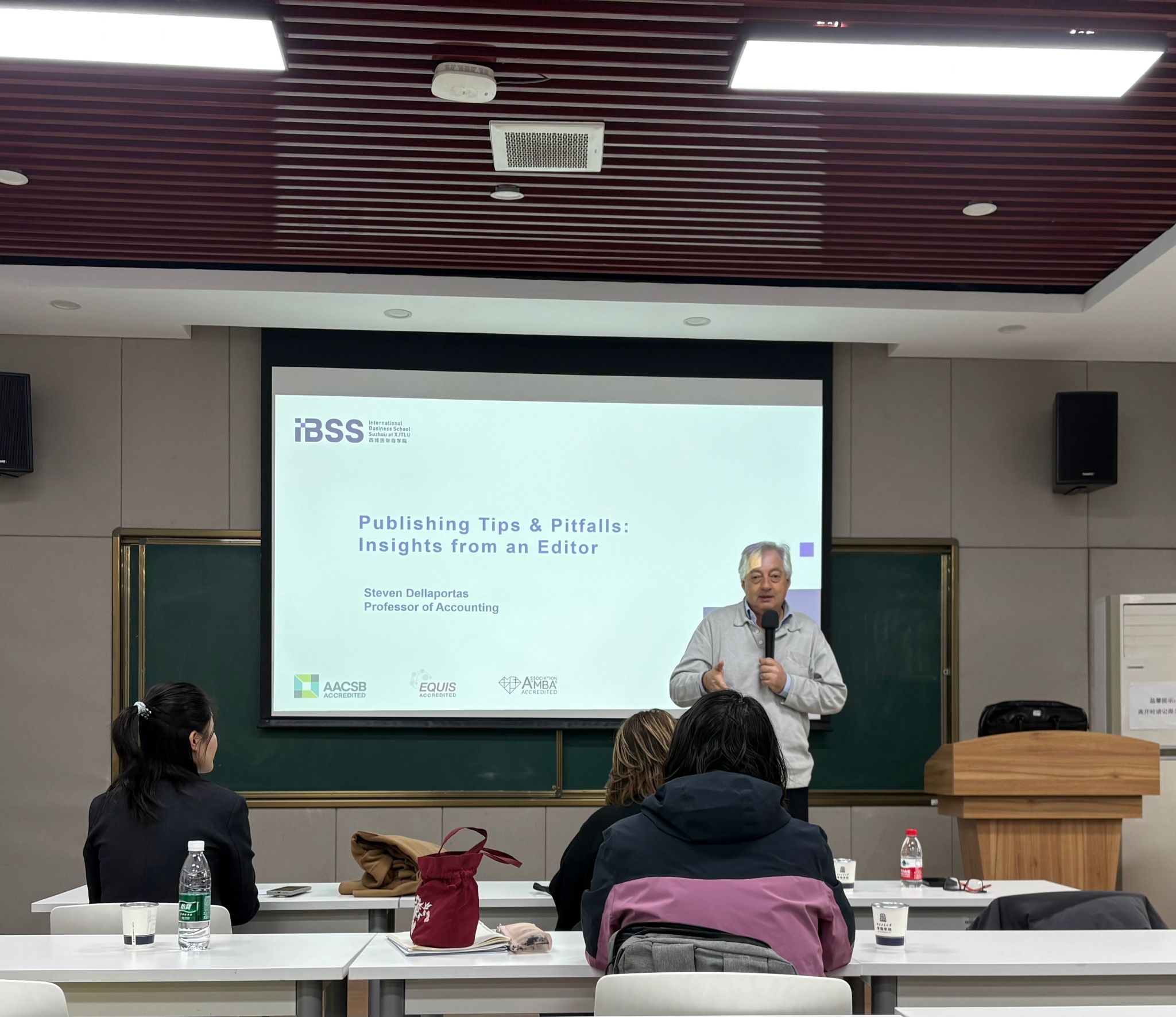 2025年12月2日下午,西交利物浦大学会计学教授Steven Dellaportas应管理学院邀请,于长安校区学院楼214报告厅为师生带来了一场题为“Publishing tips and pitfalls: Insights from an editor”的学术讲座。本次讲座作为管理学院2025年海外专家系列讲座第26期,由田皓文副教授主持,吸引了20余名研究生及本科生积极参与。