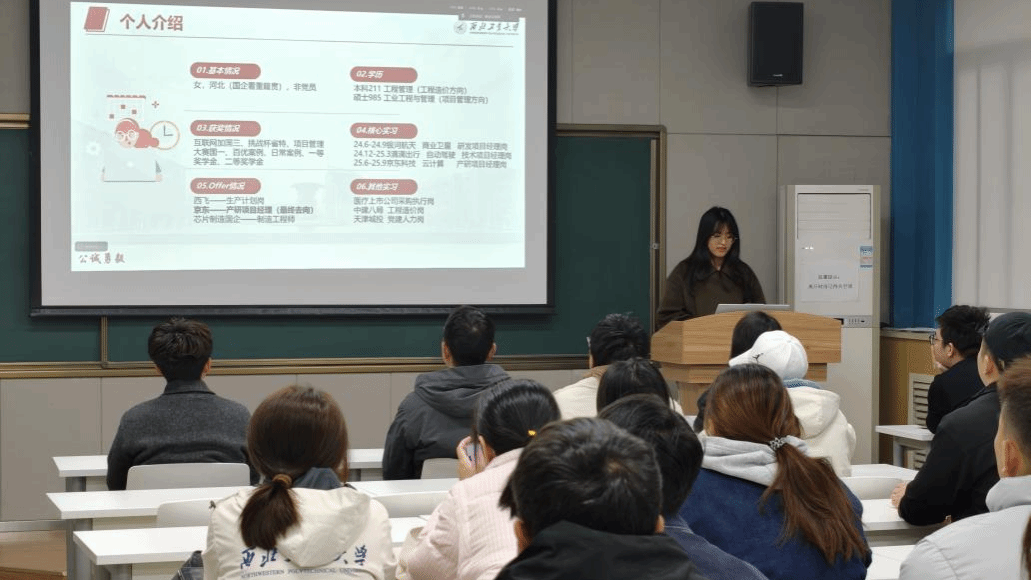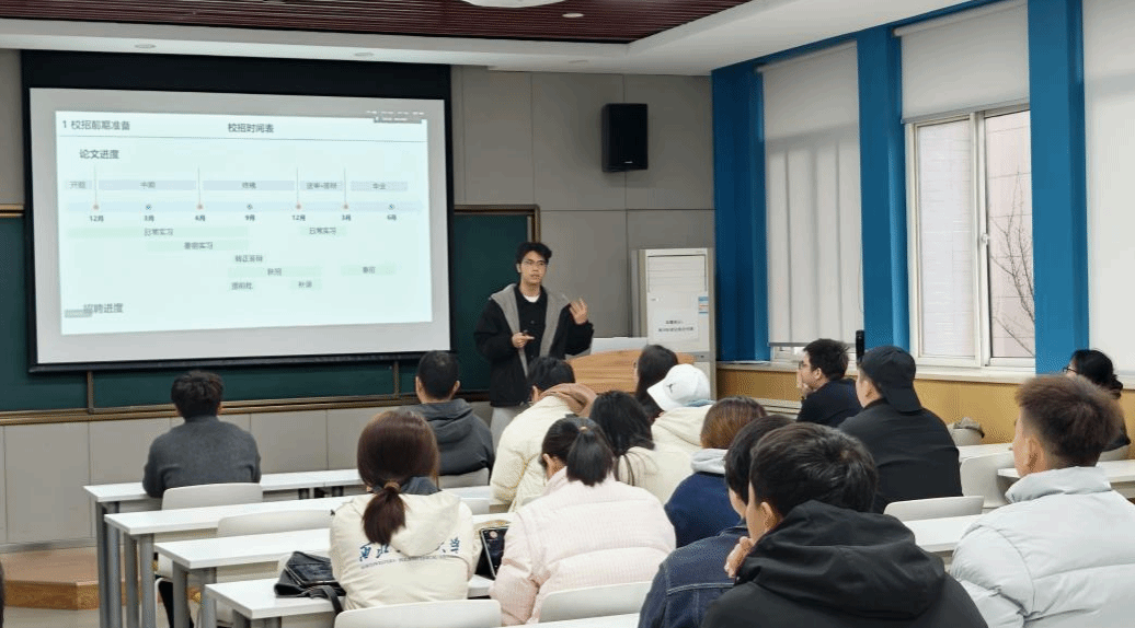 活动伊始,白洁老师以专业且全面的视角,为同学们深度剖析了当前的就业形势。她从全国就业大环境的波澜起伏,到学校整体就业情况的稳中有进;从学院毕业生的多元就业去向,到就业重点单位、领域、行业的精准聚焦,多维度、系统性地呈现了当下的就业图景。同时,结合一个个鲜活的实际案例,分享了实用的求职技巧,鼓励同学们未雨绸缪,提前为就业做好充分准备。