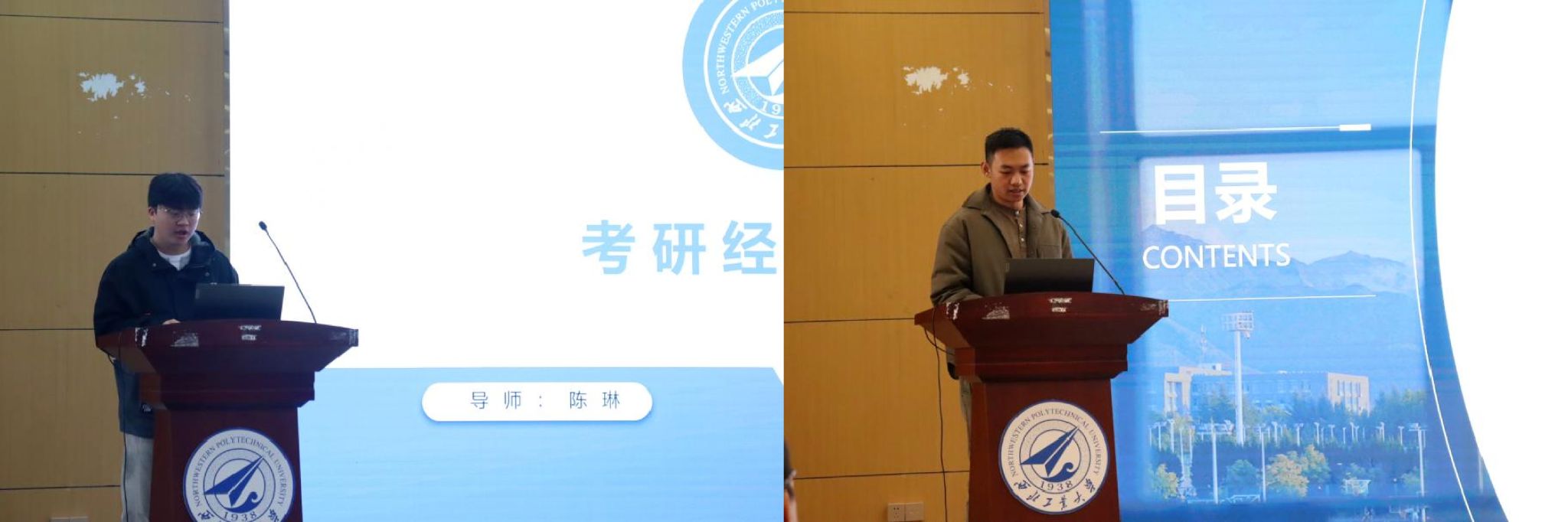考研分享环节,西北工业大学管理学院2025级硕士研究生许文硕、张哲凯线下进行经验交流。许文硕围绕考研目标、院校选择、信息搜集展开讲解,帮大家理清备考思路;张哲凯则分享了复习规划、时间管理与心态调整方法,鼓励同学们科学高效备考。