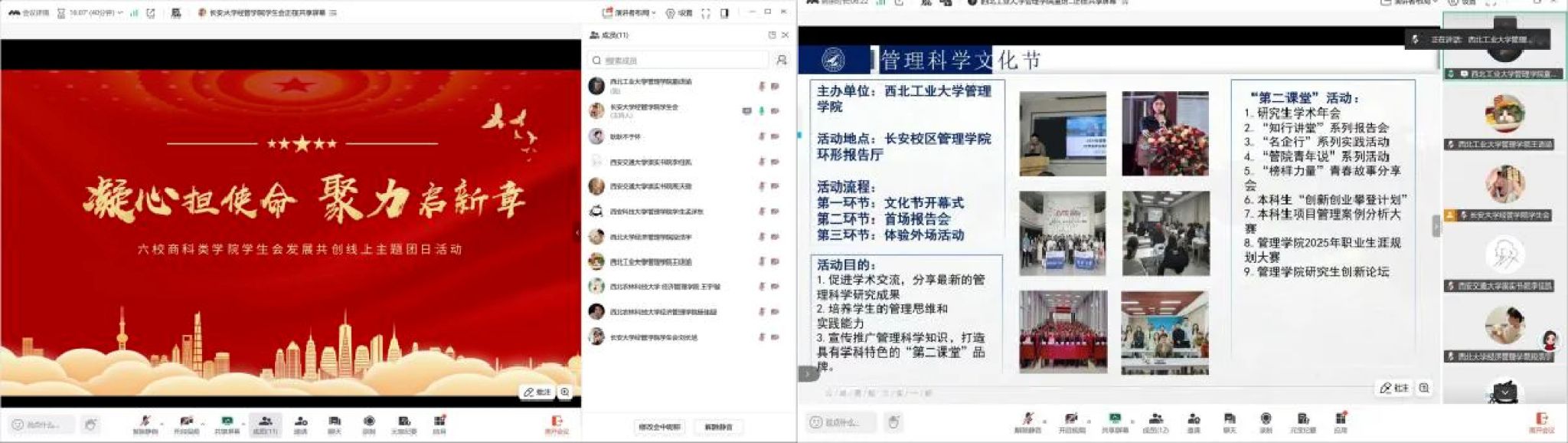 为深化校际、院际学生组织交流合作,推动学生工作提质增效,西北工业大学管理学院学生会于 2026年3月先后开展多场跨校、跨院工作交流活动。通过经验分享、思路研讨与实践互鉴,搭建互学互促、凝心聚力的沟通平台,助力学生工作高质量发展,共同打造更具活力与温度的校园文化生态。