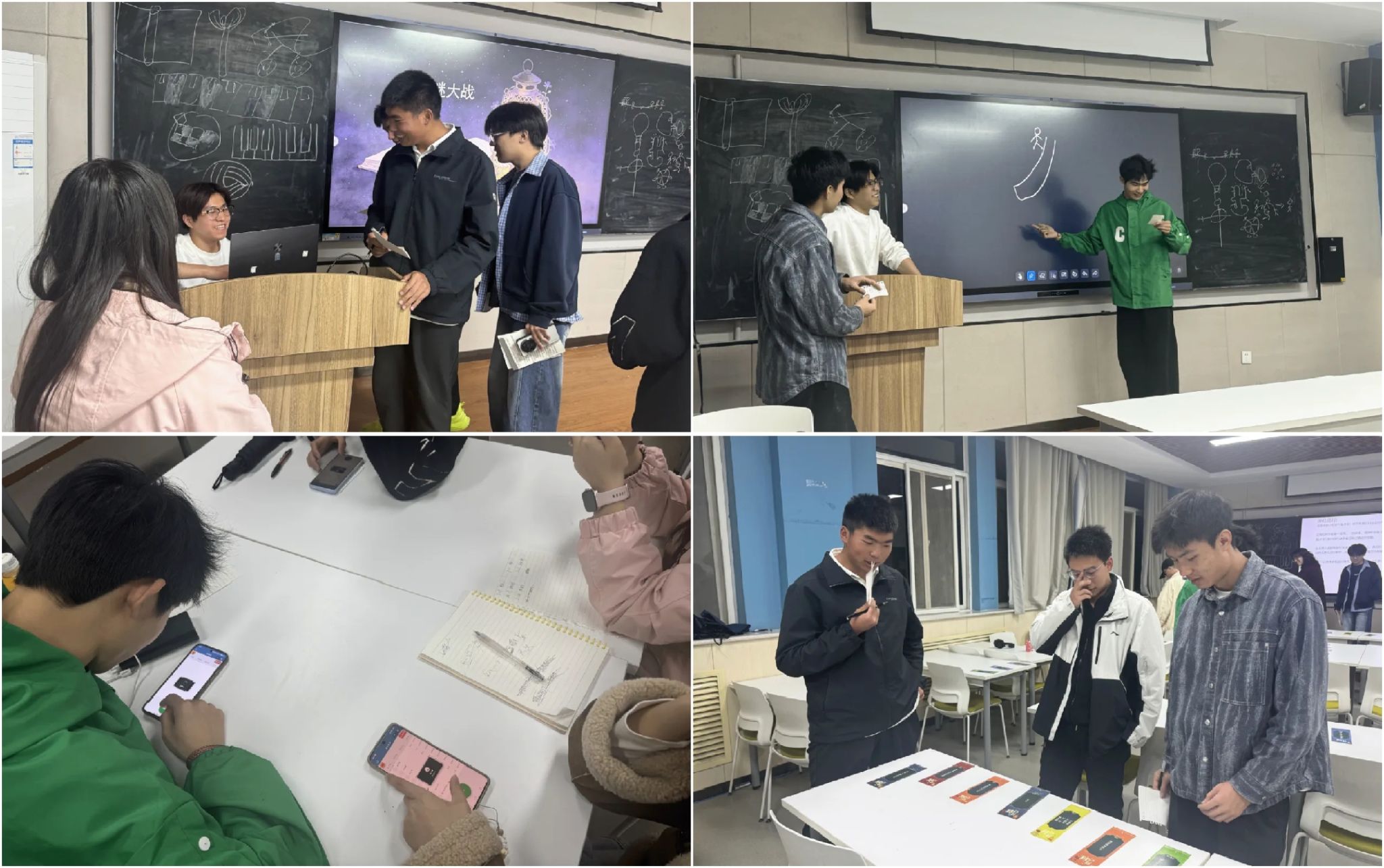 活动现场氛围热烈,同学们热情高涨、踊跃参与。本次活动设置了“你画我猜”“成语冒险”“畅行灯谜”等环节,均围绕文字趣味与团队协作展开。“你画我猜”中,作画者巧绘题意,猜题者脑洞大开;“成语冒险”通过抢答重温知识;“畅行灯谜”则吸引同学们驻足思考,或独自钻研或结伴探讨,现场欢声笑语不断,暖意融融。
