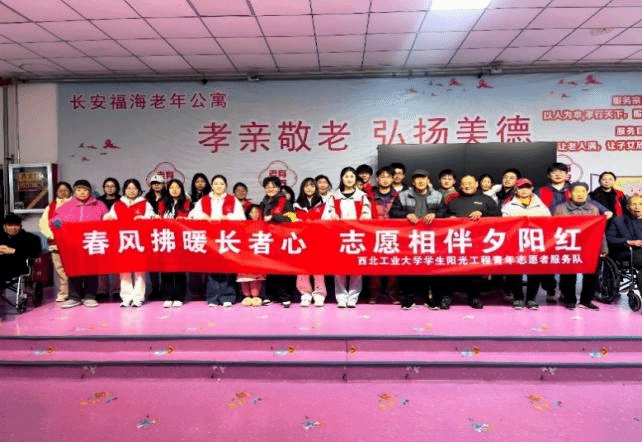 3月15日下午,西北工业大学管理学院本科生第三党支部联合学生阳光工程青年志愿者服务队,组织22名志愿者走进长安福海老年公寓开展 “情暖桑榆” 主题志愿活动,志愿者们分工协作清扫卫生、耐心陪伴老人谈心交流,并带来经典合唱、广场舞、乒乓球等文娱互动,为老人们营造整洁舒适环境、送去温暖与欢乐,这次志愿活动活动不仅践行了党的群众路线、还弘扬了孝老爱亲美德、传播了志愿服务精神,让志愿者们在实践中强化了服务意识。