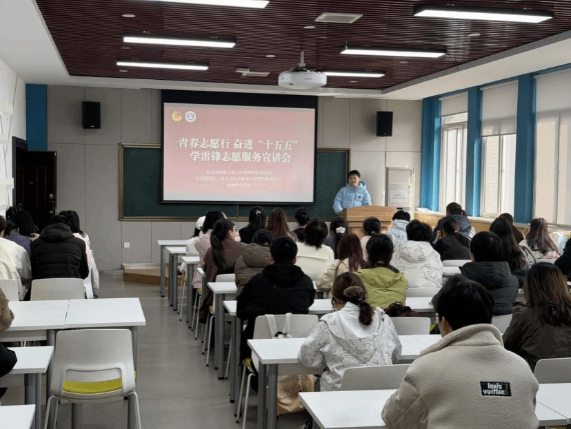 3月5日下午,管理学院开展 “传承雷锋精神 践行青春担当” 主题宣讲活动,学校青年宣讲团与团委志愿服务指导中心的同学围绕雷锋精神时代内涵与校园志愿服务工作展开分享,宣讲团成员徐路杭系统讲解雷锋精神核心要义并结合当代榜样事迹生动阐释,团委志愿服务指导中心的同学介绍了我校志愿服务体系与实践成果,帮助同学们深刻领会雷锋精神的时代价值,有效激发大家传承雷锋精神、投身志愿服务的热情,引导青年学子将奉献精神融入学习与实践,以实际行动践行青春使命与责任担当。