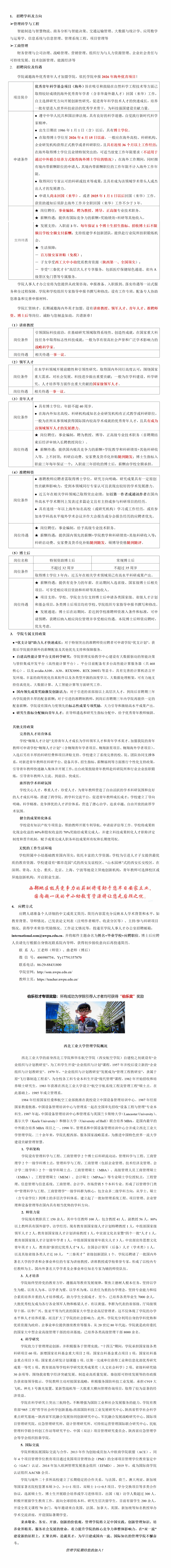 西北工业大学管理学院2026年度全球人才招聘公告
