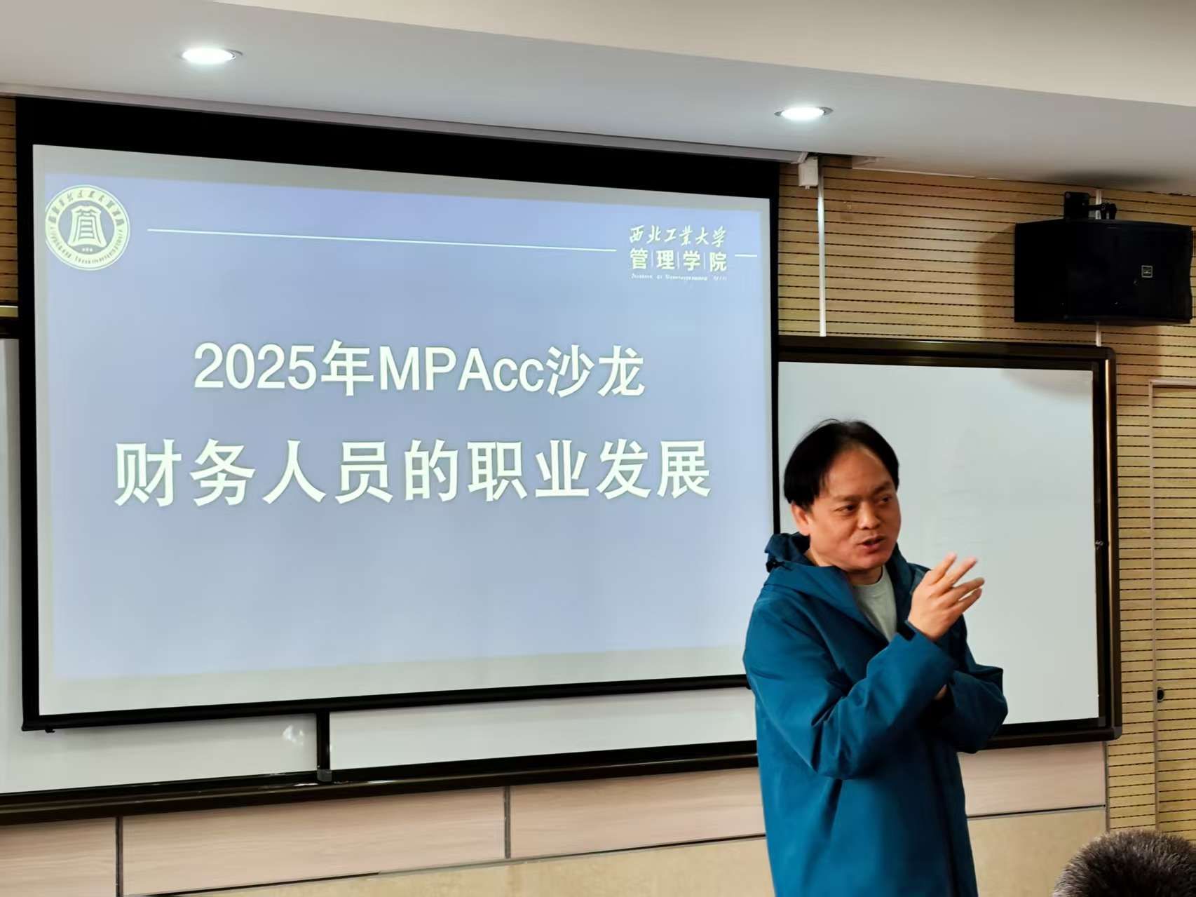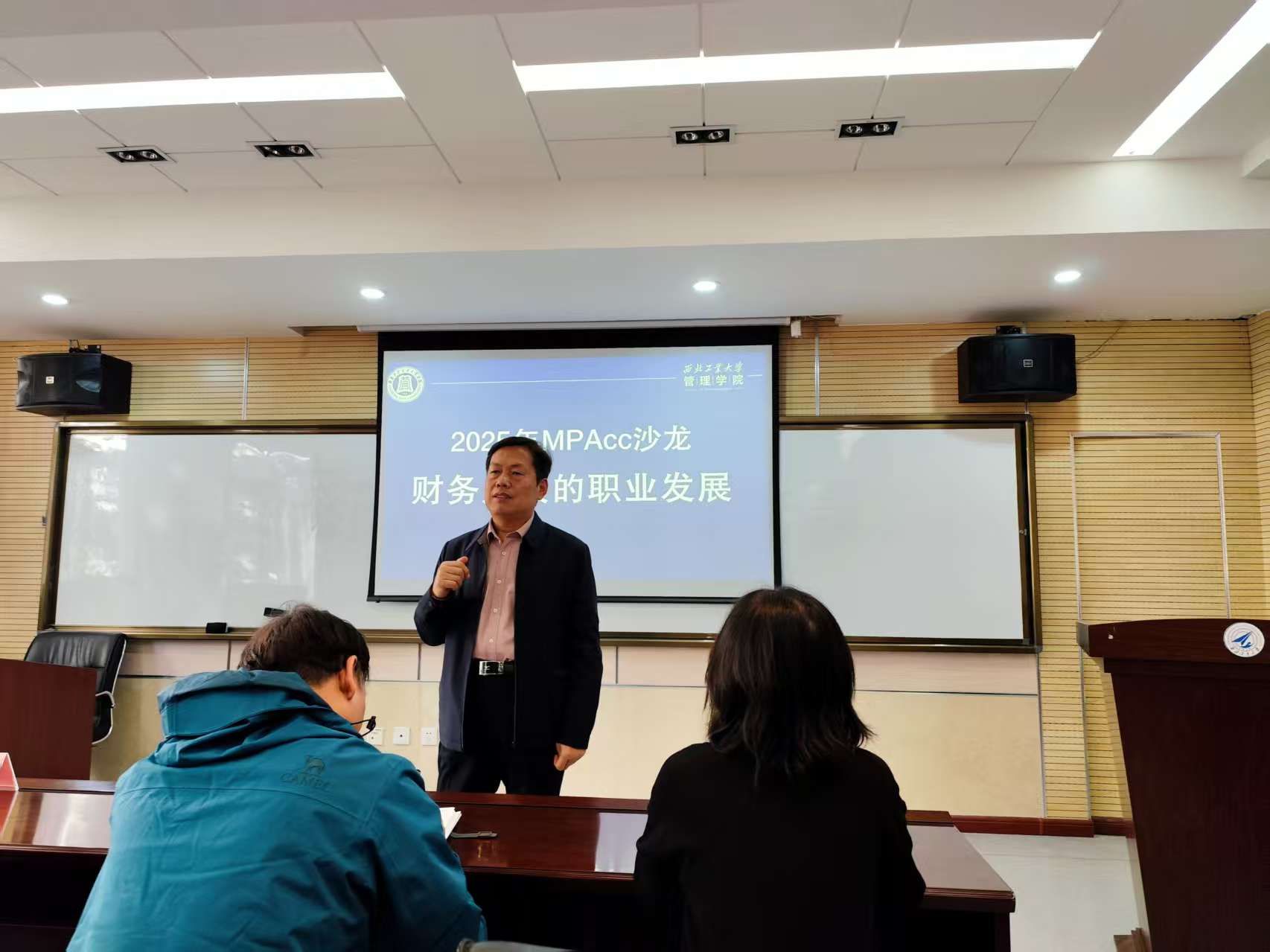 12月13日,管理学院开展了主题为“财务人员职业发展”的沙龙活动,本次活动由MPAcc教育中心主任金帆老师主持。沙龙活动邀请了陕西鼓风机(集团)有限公司集团总审计师师国强、中国联通西安市分公司财务经理黄斌和吉利汽车财务中心宝鸡公司财务部部长孙雯娟等3位资深专家作为嘉宾,学院2024级和2025级MPAcc学生和部分MBA专业的学生热情参与。
