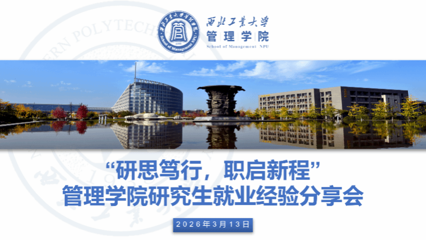 为帮助硕士研究生交流求职经验,2026年3月13日下午,西北工业大学管理学院研究生就业经验分享会在学院会议室顺利举行。活动邀...